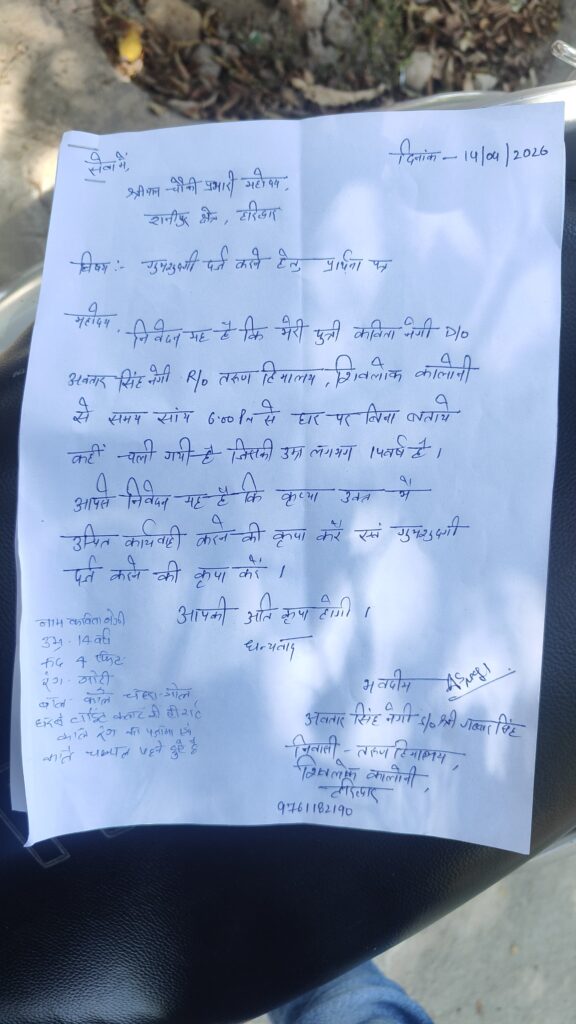 рдпрд╣ рд▓рдбрд╝рдХреА рджрд┐рдирд╛рдВрдХ 14/04/2026 рдХреЛ рд╢рд╛рдо 6:00 рдмрдЬреЗ рд╕реЗ рд▓рд╛рдкрддрд╛ рд╣реИред
