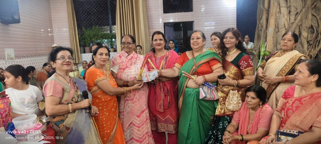 आज अष्टमी के पावन अवसर पर कीर्तन के उपरांत मंदिर प्रांगण में डांडिया उत्सव का आयोजन किया गया। कार्यक्रम में महिलाओं ने बढ़-चढ़कर हिस्सा लिया और भक्ति के साथ उल्लास से डांडिया नृत्य प्रस्तुत किया। विशेष आकर्षण के रूप में लकी ड्रा आयोजित किया गया, जिसमें सास और बहू की जोड़ी को इस बार “डांडिया क्वीन” का ताज पहनाया गया।