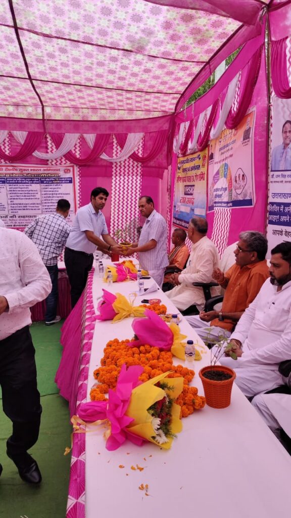 स्वास्थ्य शिविर में राज्य मन्त्री गन्ना विकास, उत्तराखण्ड सरकार श्यामवीर सैनी ने अपने संबोधन में कहा कि प्रधानमंत्री जी के जन्मदिवस के अवसर पर देश भर स्वस्थ नारी सशक्त परिवार अभियान के तहत निःशुल्क कैंप का आयोजन हो रहा है इस स्वास्थ्य कैंपों में ज्यादा से ज्यादा लोगों को अपना स्वास्थ्य परीक्षण एवं उपचार के लिए प्रतिभाग करना चाहिए।