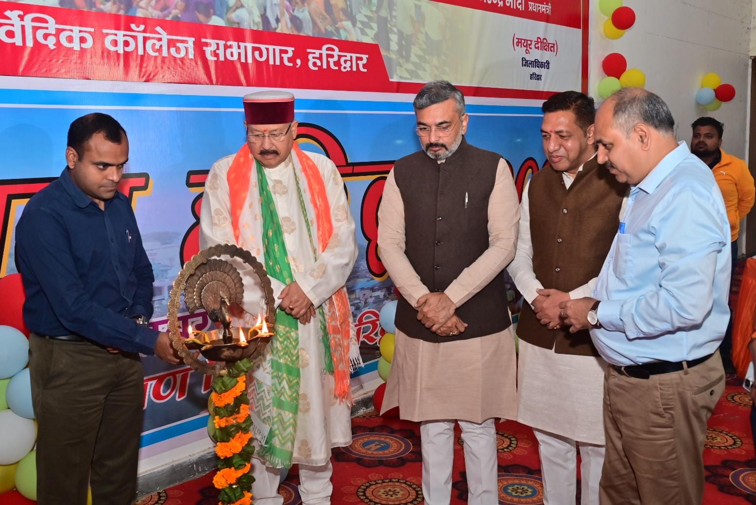 हरिद्वार 07 नवम्बर 2025- राष्ट्रगीत वन्दे मातरम के 150 वर्ष पूरे होने के उलक्ष्य में ऋषिकुल आर्वेदिक महाविद्यालय के ऑडिटोरियम में भव्य कार्यक्रम का आयोजन किया गया। जिसका जनपद के प्रभारी एवं कैबीनेट मंत्री सतपाल महाराज ने दीप जलाकर किया। इस अवसर पर उपस्थित जनसमूह द्वारा राष्ट्रीय गीत वन्दे मातरम गाया गया। इसके पश्चात दिल्ली में आयोजित राष्ट्रीय कार्यक्रम को बड़ी एलईडी स्क्रीन पर लाइव देखते हुए प्रधामनंत्री जी के ओजस्वी भाषण को सुना। जनपद के विभिन्न संस्थानों, विद्यालयों तथा कार्यालयों में वन्दे मातरम कार्यक्रम का आयोजन किया गया तथा राष्ट्रीय स्तर पर आयोजित कार्यक्रम का लाइव प्रसारण भी सुना गया।